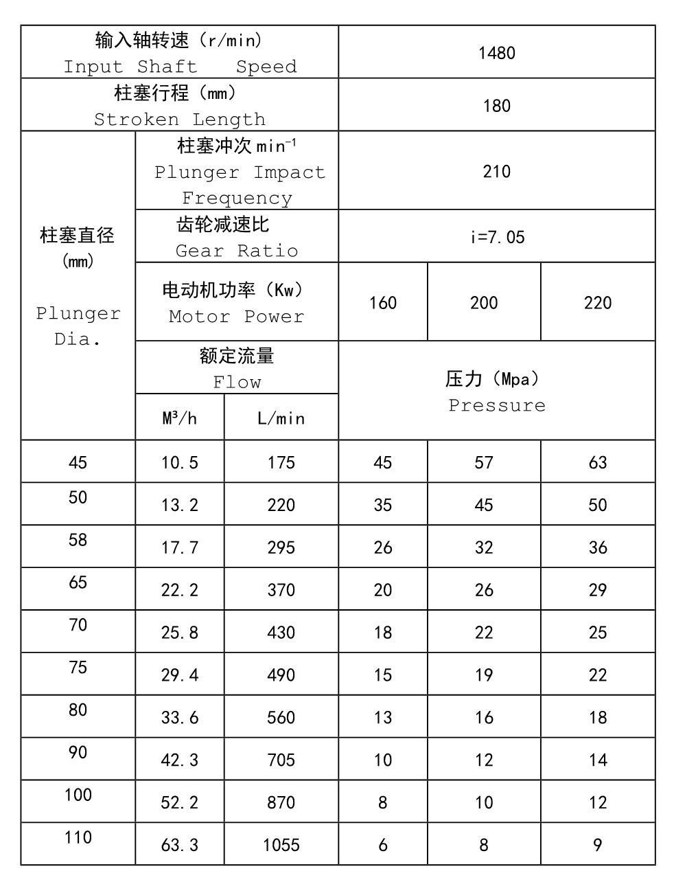 The pump is equipped with in-built gear deceleration device, and has high transmission efficiency, low noises, stable operation, small size and compact construction etc. The max.crankshaft thrust force is 96KN.